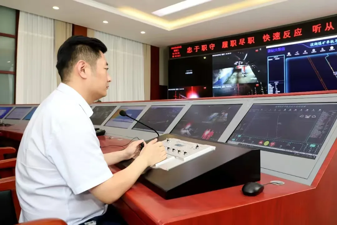 在濱湖煤礦的調(diào)度指揮中心,工作人員輕點鼠標,設(shè)置好起點與終點,百米井下,滿載物料的單軌吊機車如同智能使者,沿著預設(shè)路線自動行駛,沿途語音播報、司控道岔、風門自動開關(guān),一切盡在掌握之中!包c對點無人駕駛”讓復雜的煤礦運輸變得簡單而高效。